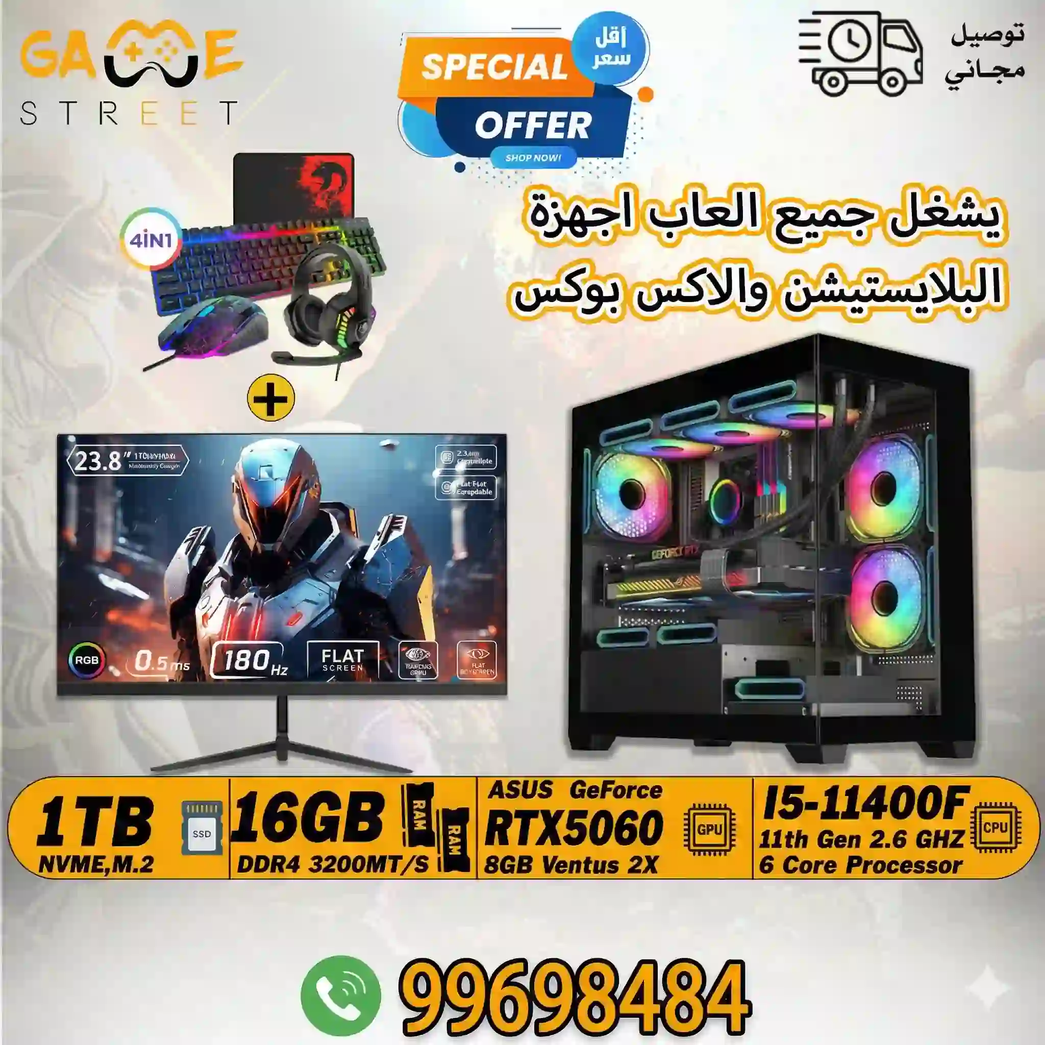 Gaming PC |1TB | 16 GB Ram |RTX5060 | Intel Core i5-11400F With GS PRO Gaming Monitor | 24″ | FHD | 180 Hz | 0.5ms | FAST IPS with Light up Combo Kit Bundle Bundle