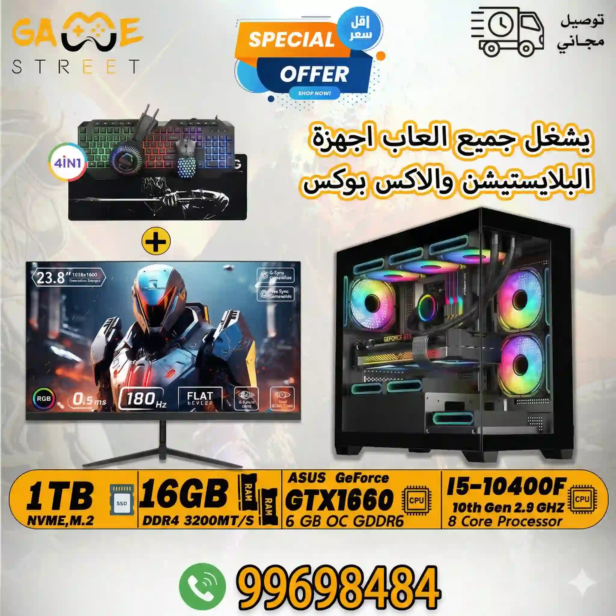 Gaming PC |1TB | 16 GB Ram |GTX1660 | Intel Core i5-10400F With GS PRO Gaming Monitor | 24″ | FHD | 180 Hz | 0.5ms | FAST IPS with Light up Combo Kit Bundle Bundle