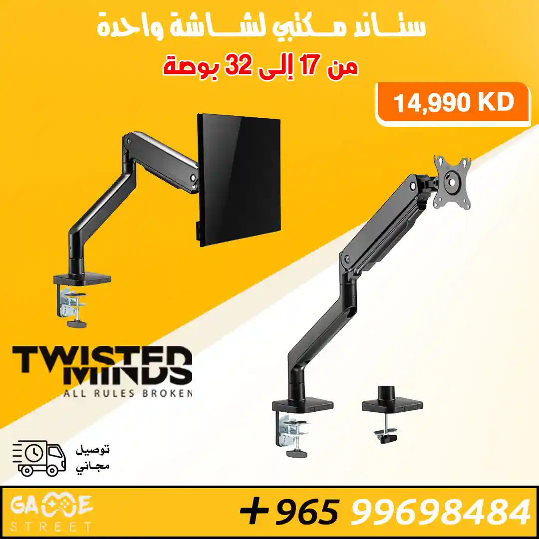 Twisted Minds Gaming Monitor Arm with RGB Lighting Stand and Mount For Gaming And Office Use 17″ – 32″ Up To 8 Kg – Grey